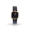 Cal.1009/39 quartz movement, matt black dial with applied gold baton indexes, gold baton hands, octagonal case with reverse secured by 4 gold screws, T-bar lugs, on black VC strap with plain 18k gold pin buckle. Case, dial and movement signed.