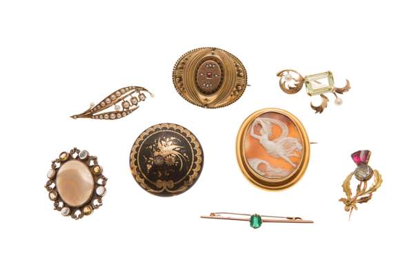 A collection of brooches
