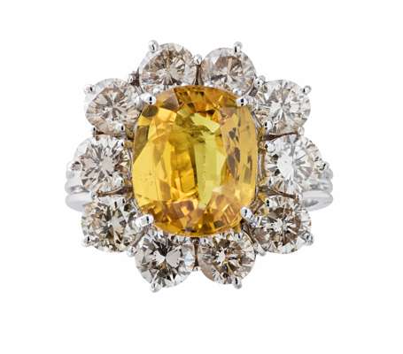 A yellow sapphire and diamond cluster ring