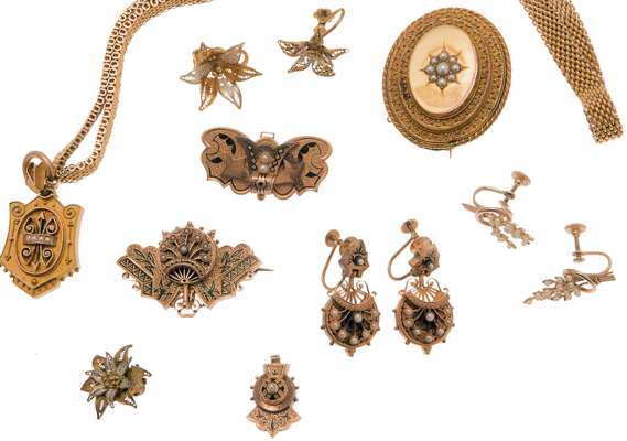 A collection of various pieces of Victorian jewellery