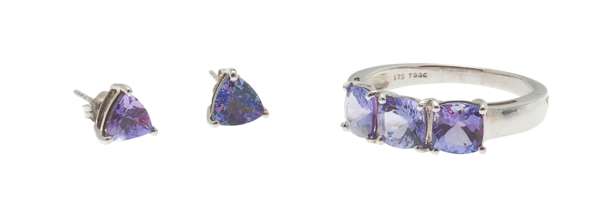 A three stone Tanzanite set ring