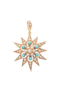 An Edwardian pearl, turquoise and diamond set brooch/pendant