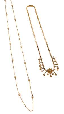 Two Victorian gold, pearl and gem set pendants