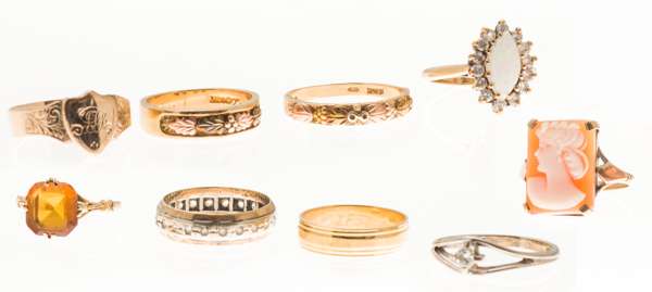 A group of diamond and other gem set rings