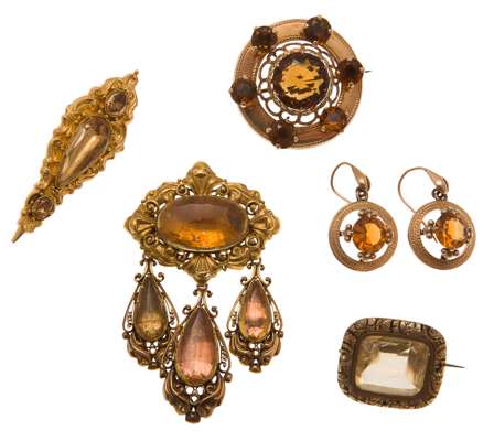 A Scottish citrine set brooch and associated earrings