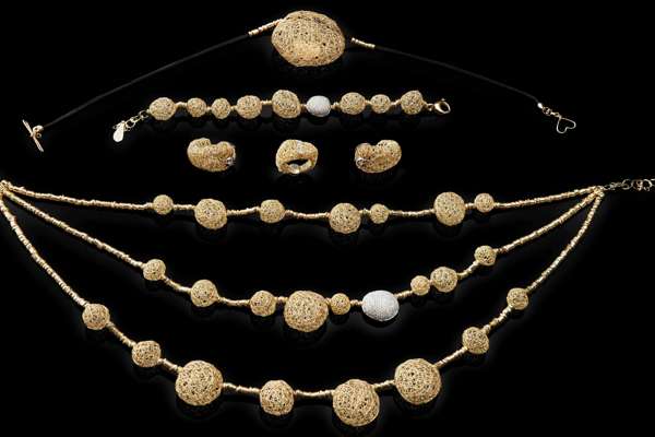 Orlando Orlandini was brought up with a long family connection with the arts. His parents being sculptor and painter with a strong track record of being in a number of important museums. He initially studied sculpture but then moved to jewellery with a sculptural angle. 1983 saw the purchase of a 14th century convent for his family home and atelier. Inspiration comes from fine work with the materials, woven, spun and joined to form panels of links similar to chain mail but with a more decorative than protective function. The work involved in crafting these pieces means that they can be imposing to view but lightweight for the wearer.