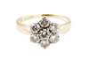 claw set with seven round cut diamonds, to a plain 18ct yellow gold shank