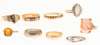 to include a single stone diamond set ring; a 9ct gold opal and colourless gem set ring; an 18ct gold wedding band; a cameo set ring and a citrine set ring, both stamped 9ct; two bi-coloured gold set rings; one 9ct gold the other stamped 585; a yellow metal ring with heart motif; a colourless gem set eternity ring (9)