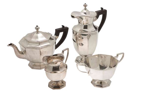TB&S, Sheffield 1923-24, of octagonal baluster form, comprising: teapot, water pot, sugar and cream