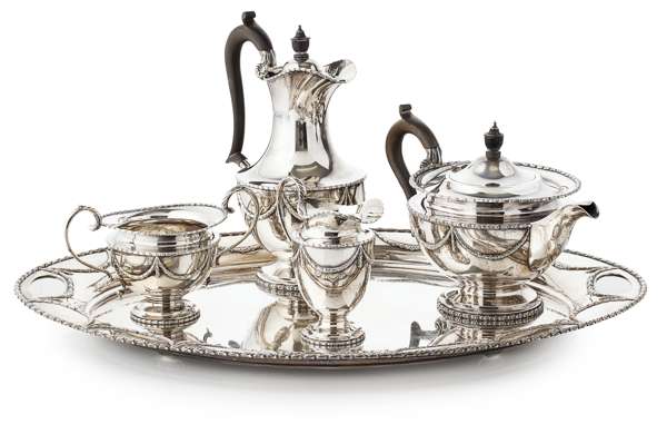 Sheffield 1921-22, of plain classical vase shaped bodies, swag draped decoration, cast border (5)