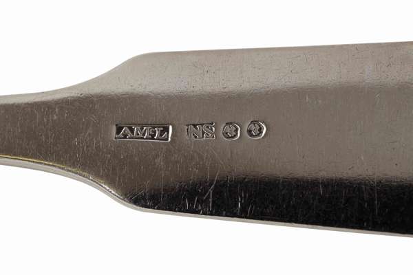 Alexander McLeod, marked AMcL, INS, device struck twice, of Fiddle pattern with engraved script initial S to terminal