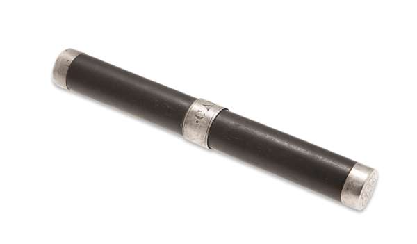 unmarked, circular ebony baton, end silver caps engraved shield with Edinburgh arms to one end and the castle in a shield to other, central silver band engraved 'CALTON No.'