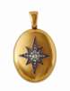 of oval outline, the applied star motif set with graduated rose cut diamonds in a blue enamel border