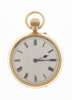 open faced, keyless wind, medium size white enamel dial, Roman numerals, engraved monogram to case, three quarter plate lever movement