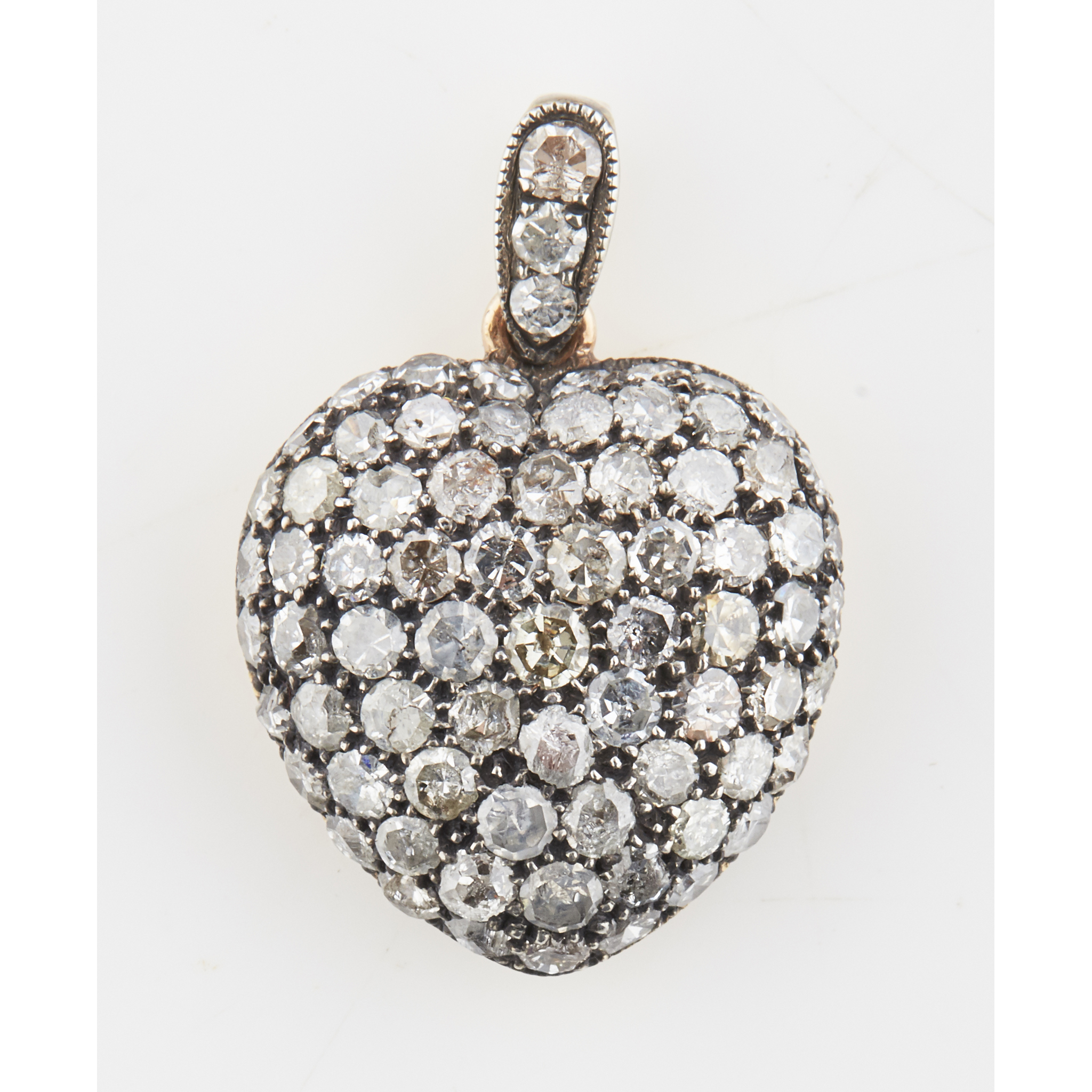 pave set to the front with round eight cut diamonds, modelled in unmarked yellow and white metal