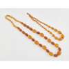the first composed of a single strand of graduated oval amber beads; the second longer strand of oval polished and facetted amber beads of uneven yellow hue