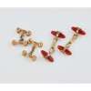 to include a pair with carnelian baton terminals, with rose cut diamond set collar mounts and yellow metal links; together with a plainer pair modelled in 9ct gold with engraved detail (2)