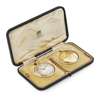 A cased 18ct gold slim line open faced pocket watch and Vesta case