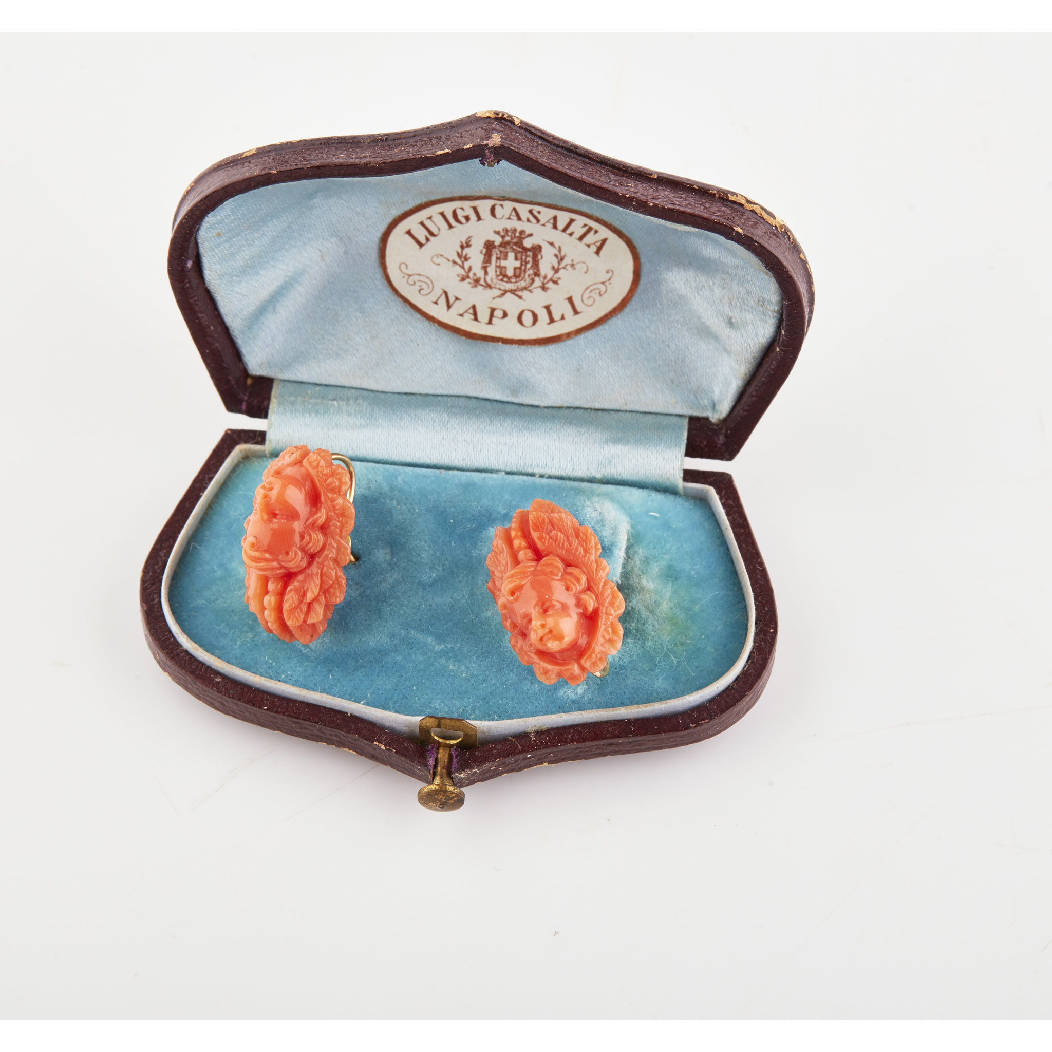 A pair of Italian mid-19th century carved coral ear clips
