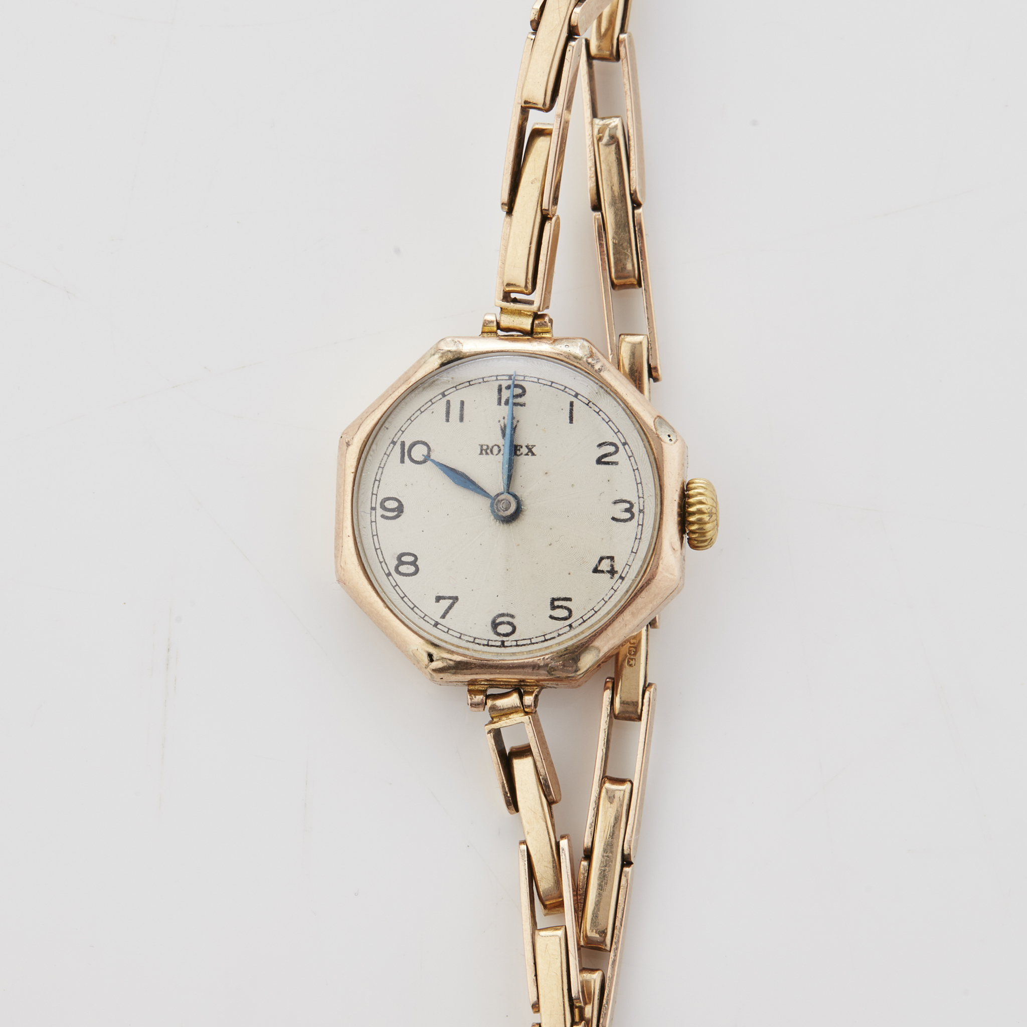 the octagonal case with guilloche dial, Arabic numerals, expanding bracelet, lever movement signed