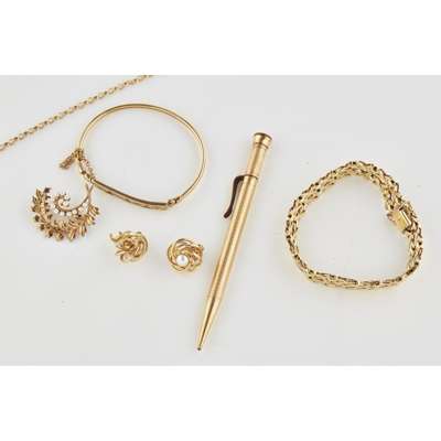 A collection of gold jewellery