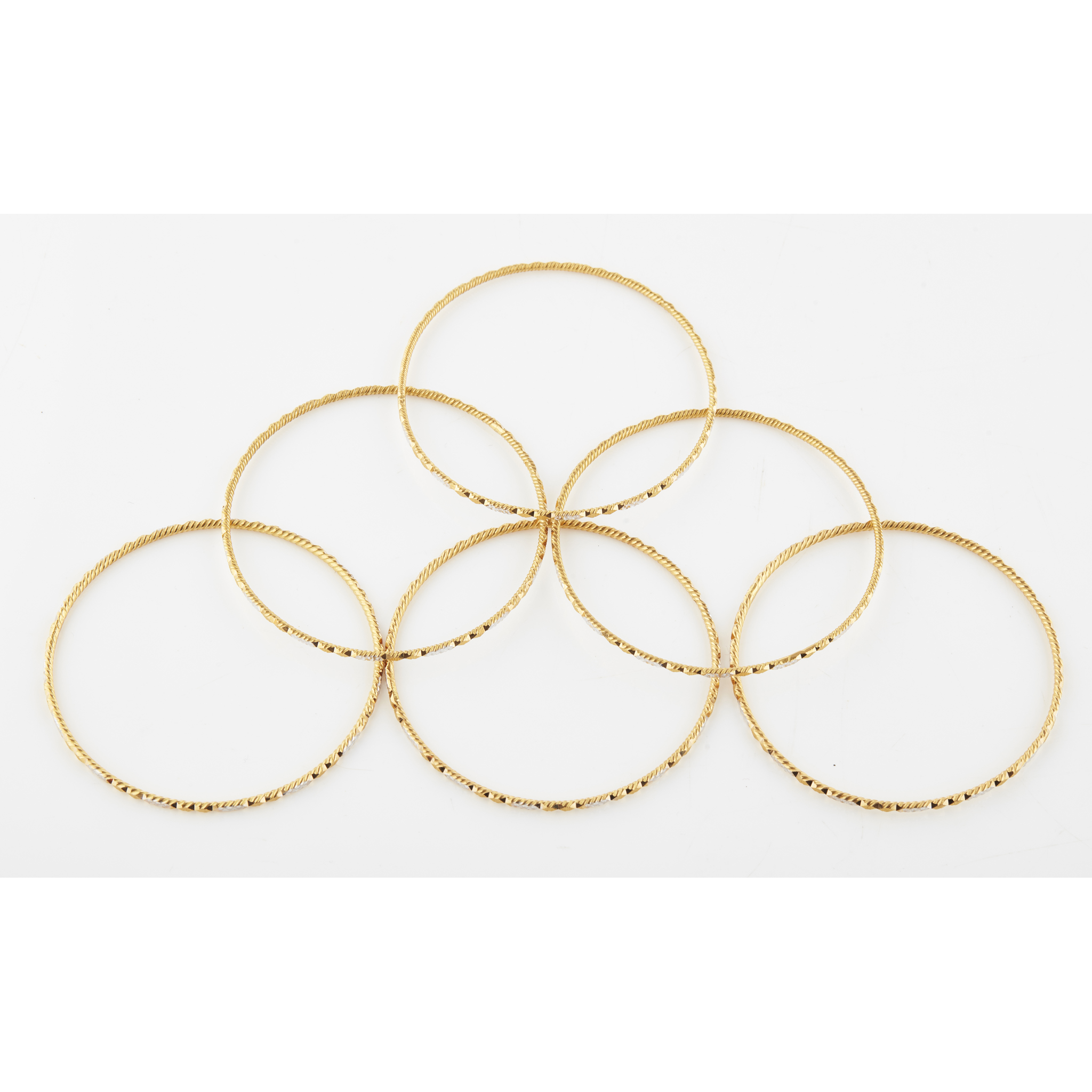 A set of six yellow metal bangles