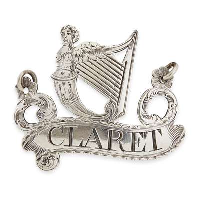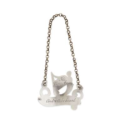 James Phipps, London circa 1780, of scroll form, pierced for Claret, with Irish harp surmount, engraved to rear "It's new strung and WILL be heard"