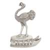 Crest of the family of Coke of the County of Norfolk: Upon a chapeau gules turned up ermine an ostrich with a horseshoe in its beak argent.