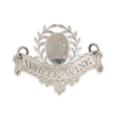 Susanna Barker, London circa 1780, of shaped curved form, all over bright cut decoration, engraved for White Wine, acanthus scrolls, central oval cartouche engraved with a crest
