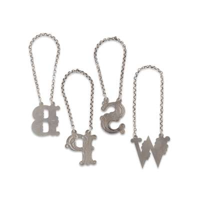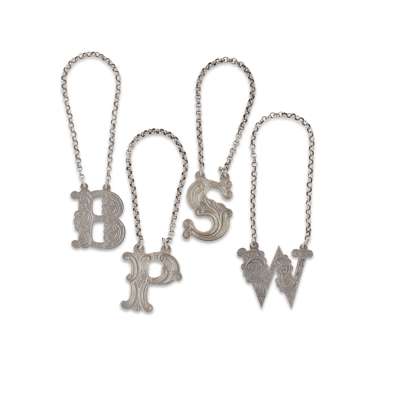 McKay & Chisholm, Edinburgh circa 1880, formed as pierced letters W and B, with profuse foliate engraving; together with two unmarked examples (likely Scottish) formed as letters S and P with chased and engraved scroll decoration (4)