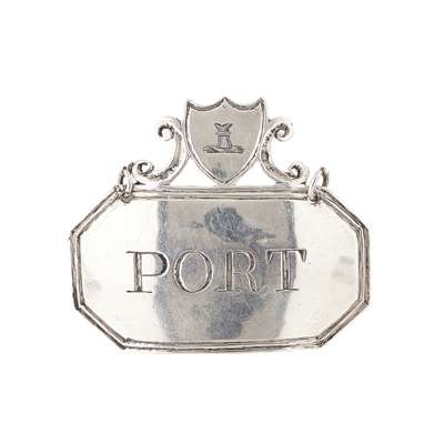 William Astley, York circa 1806, of canted rectangular form with reeded border, inscribed PORT within surmounted heraldic shield with scroll supports with engraved crest