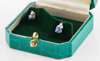 each claw set with a circular cut blue sapphire below a trio of similarly set small round cut diamonds, set in 18ct white gold to post and butterfly fittings