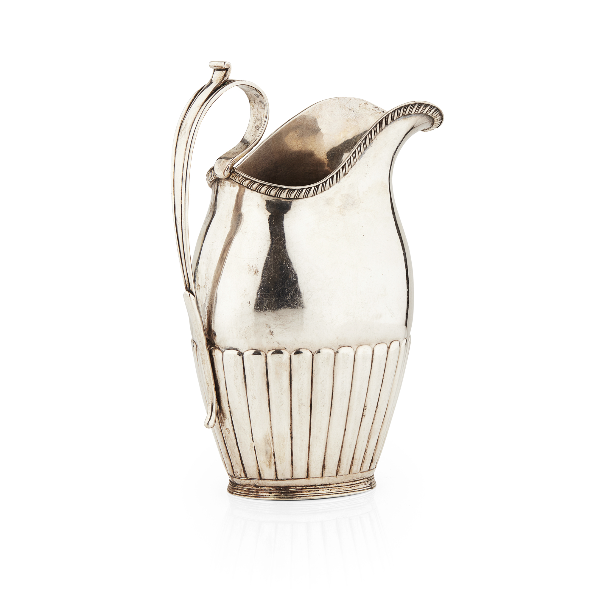 St Petersburg, marked for Gotthard Ferdinand, the tapered baluster body with lobed lower section and gadrooned rim, with simple scroll handle