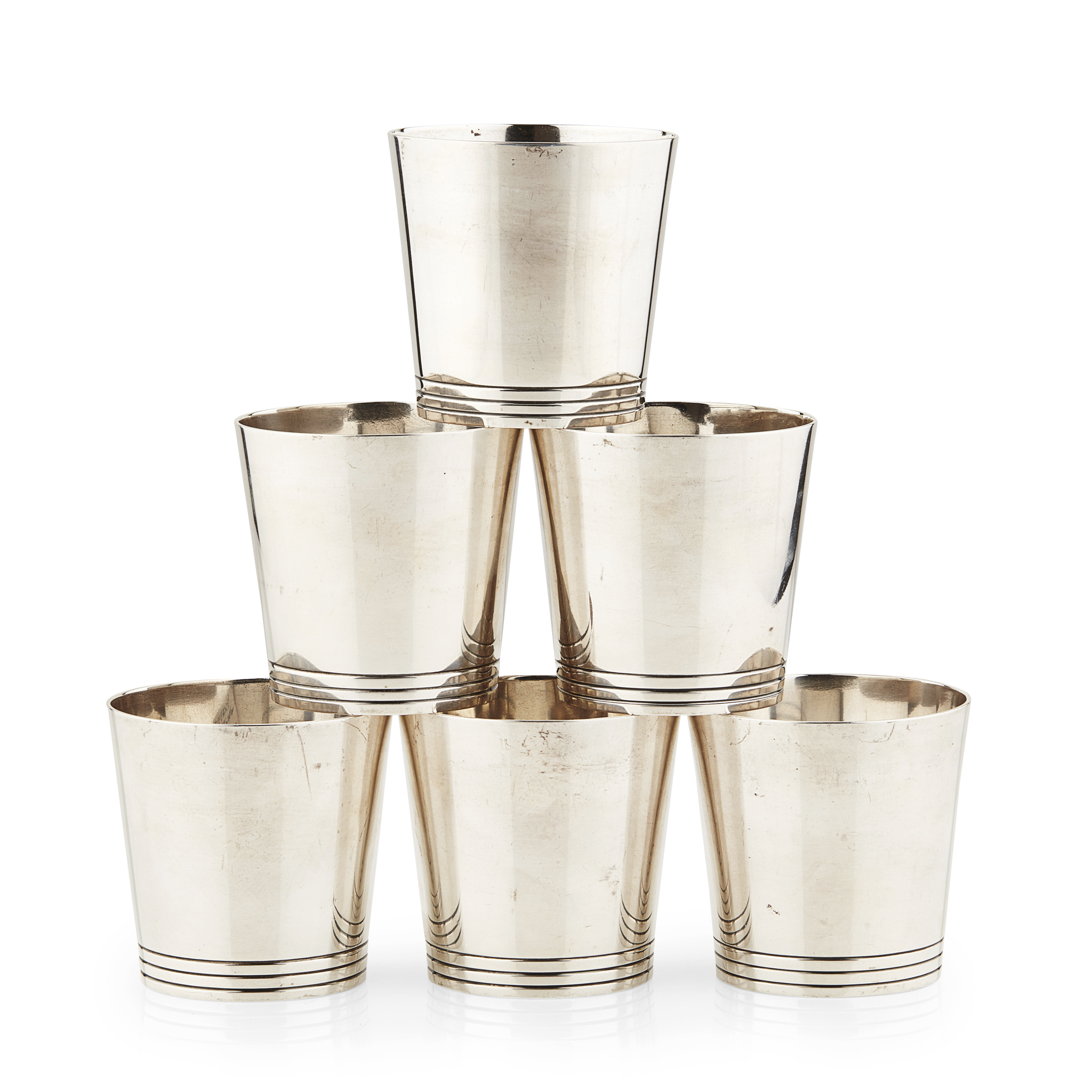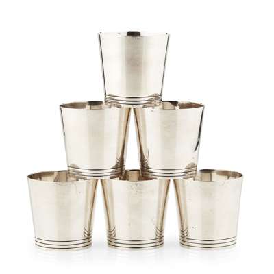 Tiffany, marked to base Tiffany and Co. makers, Sterling silver, of simple tapered beaker form with reeded rim to base (6)