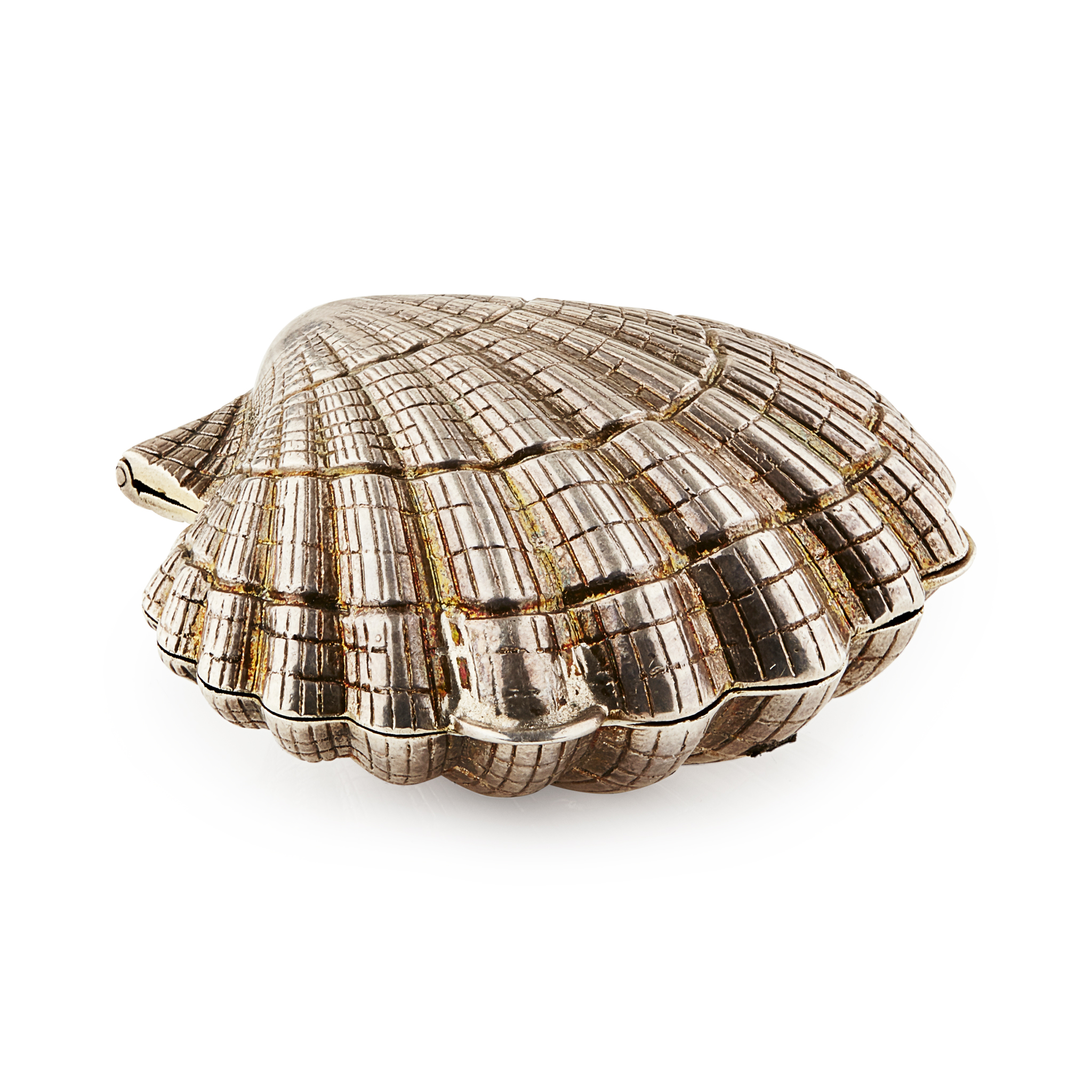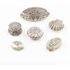 various marks; Sterling, 800, etc, to include embossed examples with foliate decoration a scalloped shell example and a Dutch box with cherub and doves to cover (6)