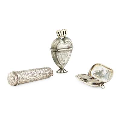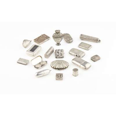 mainly marked sterling, American, some base metal comprising; vesta cases, scent bottle, patch boxes, snuff box, cheroot holder etc. (18)