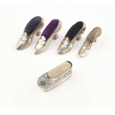 each marked Sterling, all of simple shoe form with pin cushion (5)