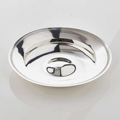 R Comyns, London 1966, of conventional form with wide rim and dished well with domed centre