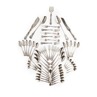 all Edinburgh, various dates and makers, of single struck King's pattern comprising two serving spoons, seven dessert forks, twelve dessert spoons, six table forks, twelve dessert spoons and seven tea spoons; together with other sundry flatware of similar patterns (qty)