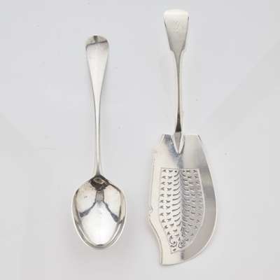 R Luke Glasgow, RL, RL, S, Hanoverian pattern engraved initials AS/RH; together with a fiddle pattern fish slice, Glasgow 1820 (2)