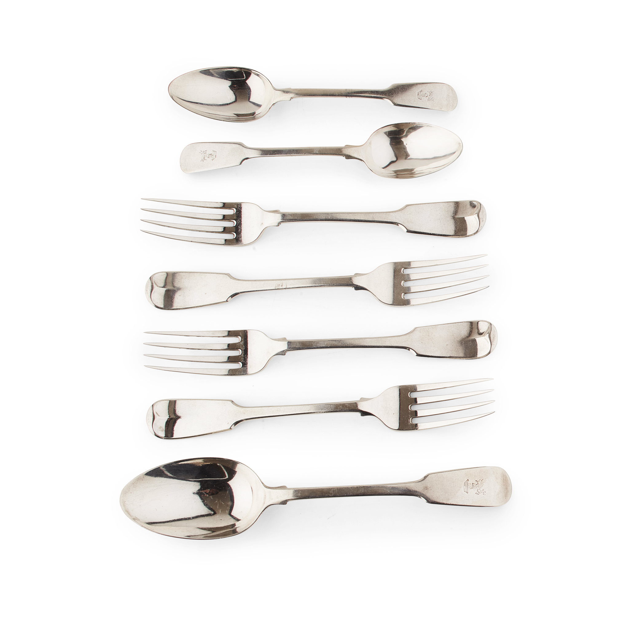 Paul Storr, 1815, London various dates, to include four table forks, a table spoon and two dessert spoons (7)