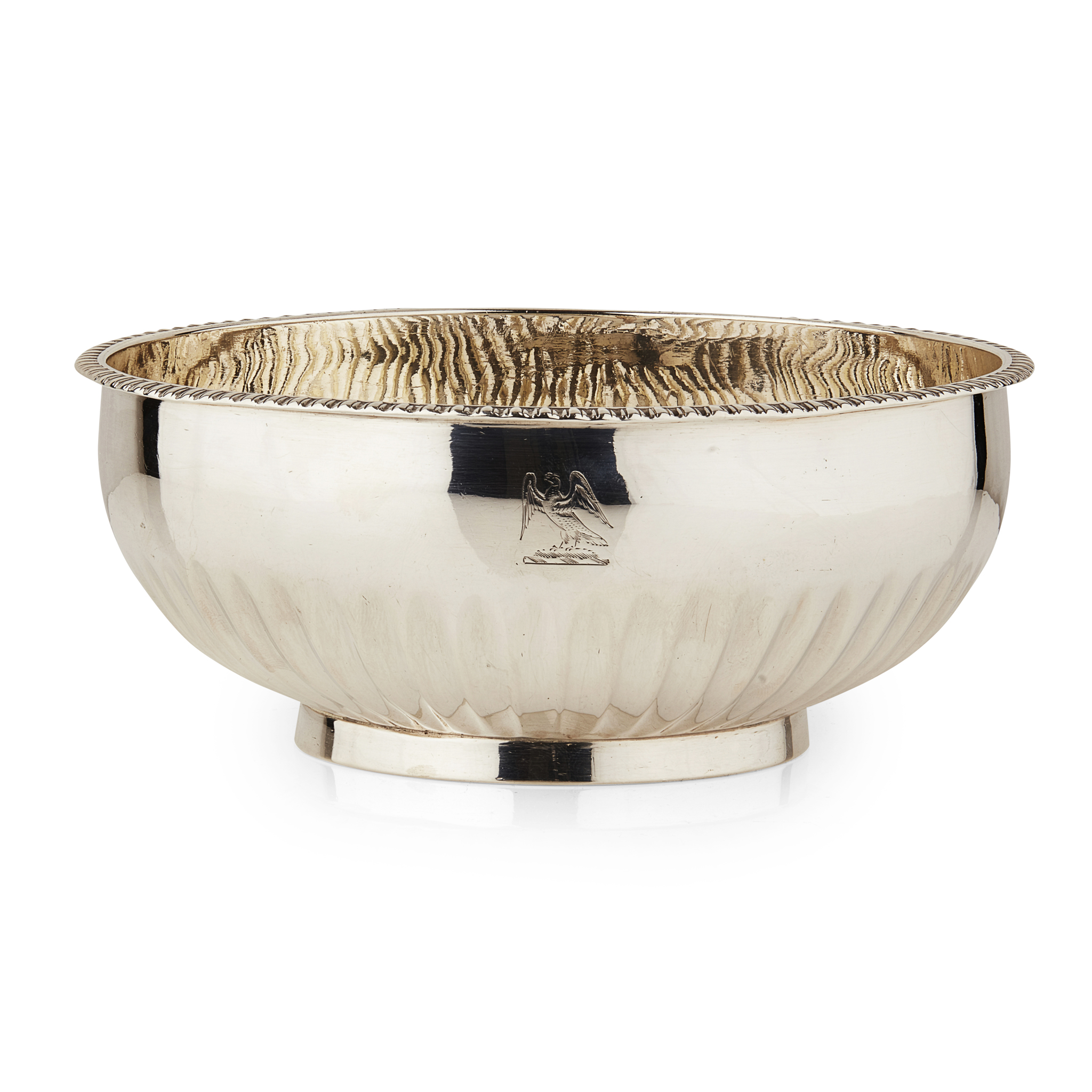 Alice & George Burrows, London 1811, of hemispherical form with concave fluted lower section and gadrooned rim, with engraved crest to body, raised on a simple foot rim