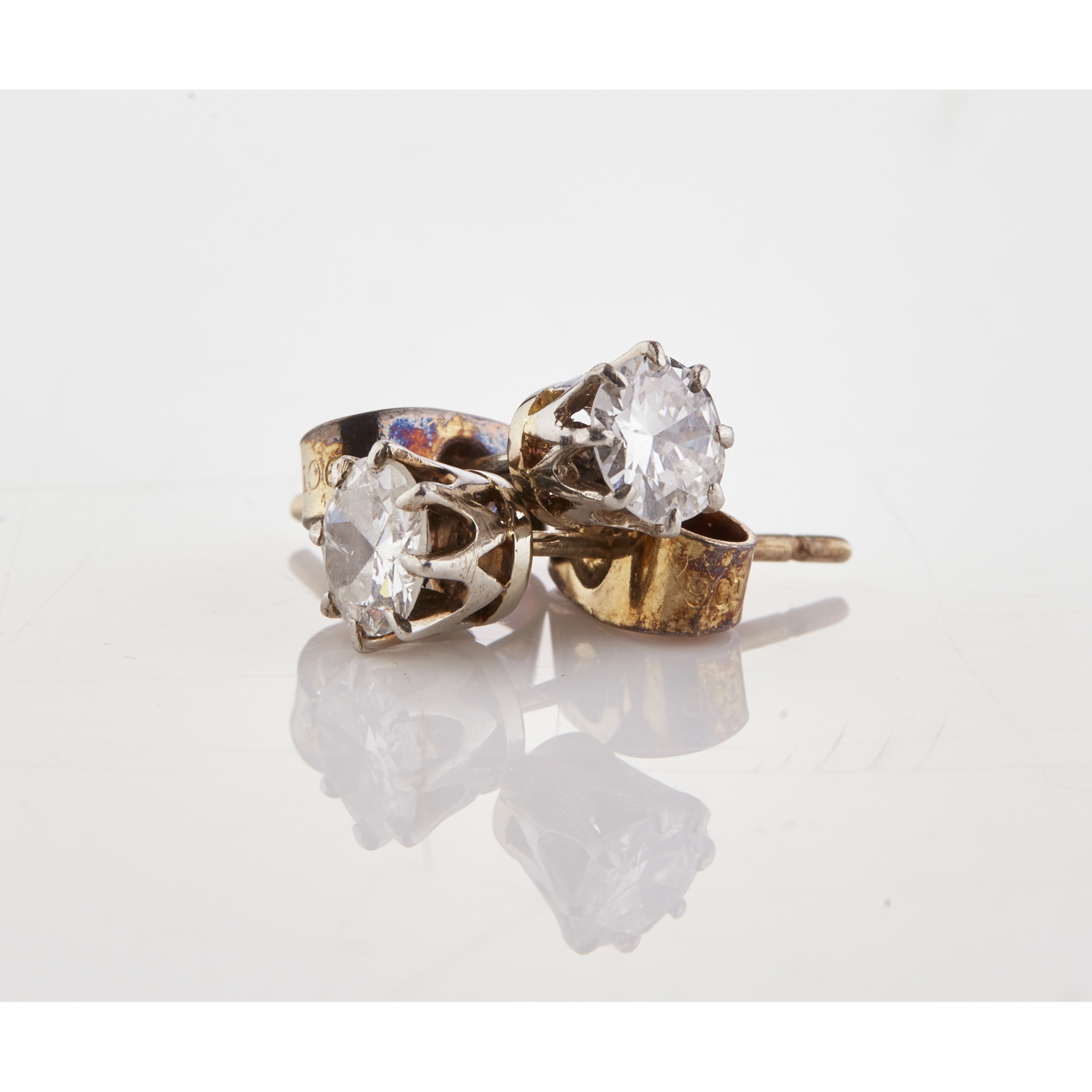 each claw set with a single round brilliant cut diamond, with post and butterfly fittings