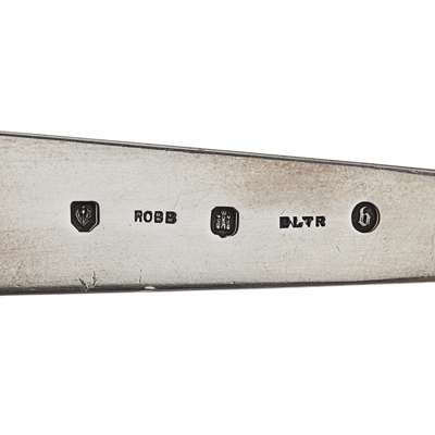 William Robb, five marks; thistle, ROBB (Incuse), Castle, BLTR (Incuse) date letter., Edinburgh 1902, the tapering flat pointed blade with a plaited circular section wire handle with inset citrine