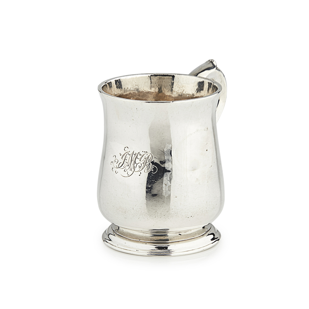 RC, maker, Hugh Gordon Assay Master, Edinburgh 1747, of plain baluster form, engraved initials, scroll handle, plain foot