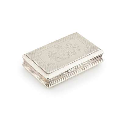 Nathaniel Mills, Birmingham 1846, of rectangular form, the hinged cover with later engraved armorials for The Southern Railway Company, the body with engraved chequering, interior gilt and later engraved to 'Col. Eric Gore Browne... 1947'