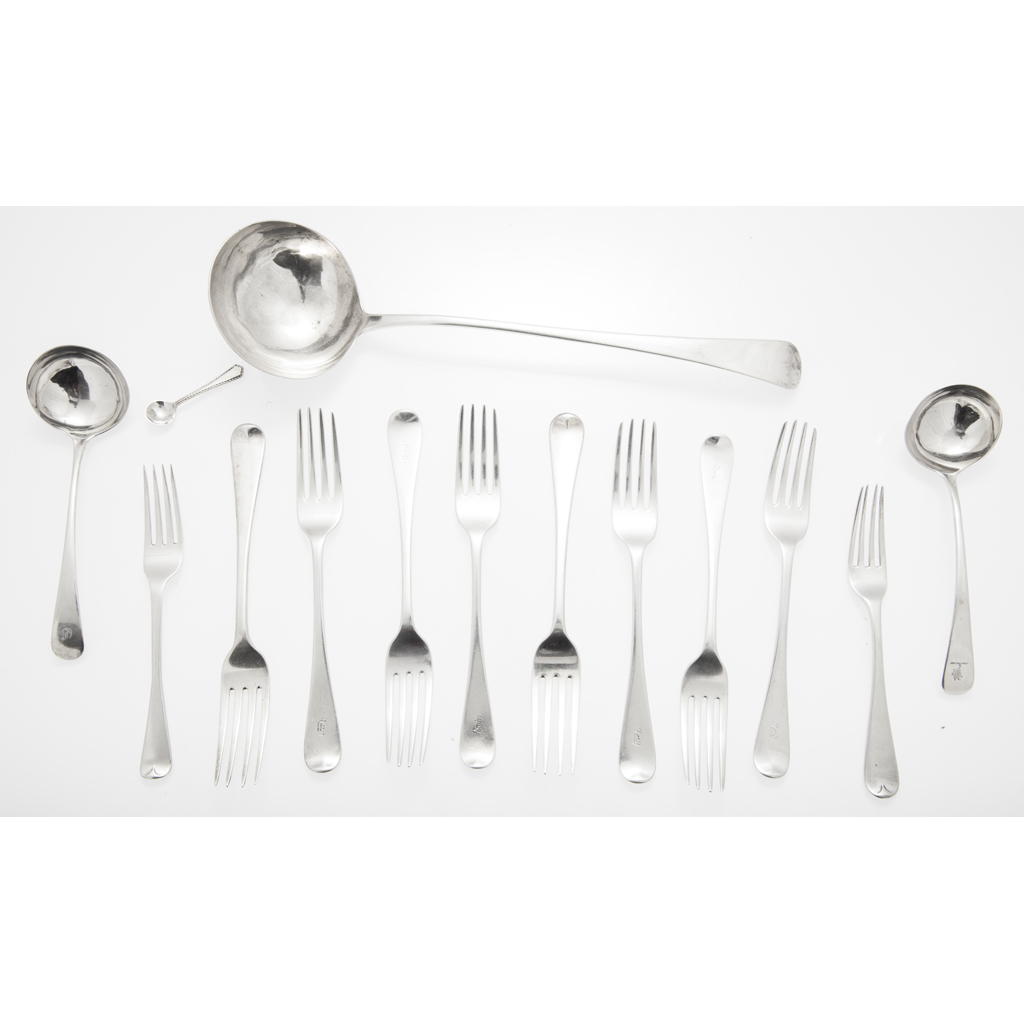 mixed dates and makers, comprising; a soup ladle, two cream ladles, eight table forks, two dessert forks (qty)