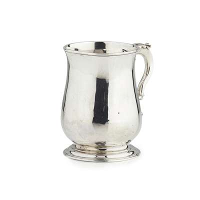 F.C, London 1765, of plain baluster form, leaf capped scroll handle, engraved initials to the underside