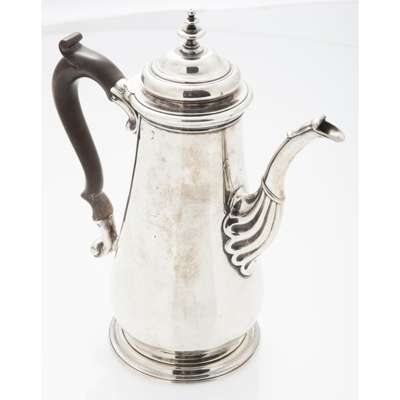 London circa 1760, marks worn, of tapering form, stepped cover, turned finial, engraved crest, stepped foot