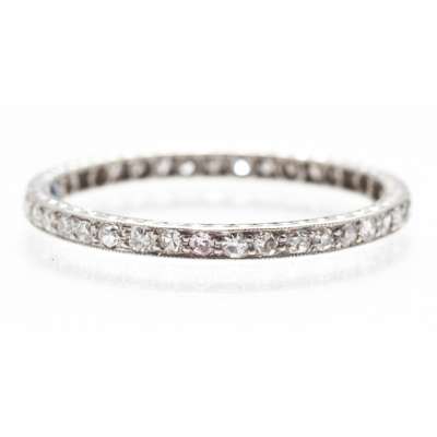 set with a single row of eight cut diamonds, with engraved detail to sides, unmarked